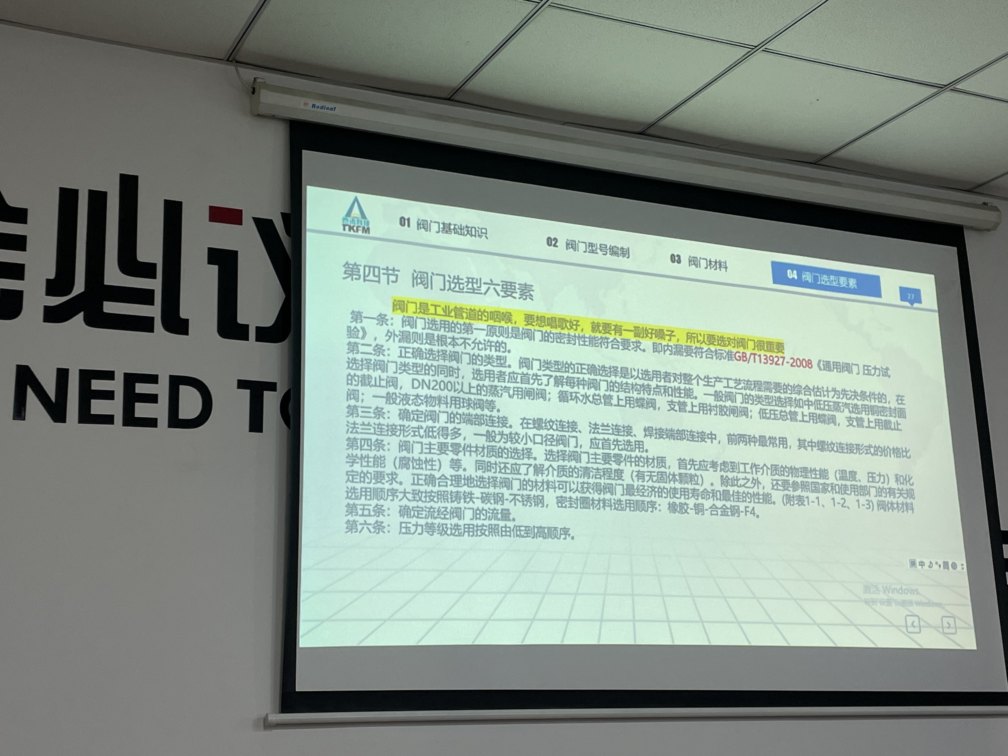 隨著北方供暖的陸續(xù)啟動(dòng),沈陽泰科流體的閥門生產(chǎn)及銷售工作也進(jìn)入到相對(duì)一個(gè)不繁忙的階段,雖然生產(chǎn)及銷售工作不繁忙,不代表著其他工作也不繁忙,公司利用這段時(shí)間,對(duì)泰科閥門的各個(gè)崗位包括銷售、技術(shù)、內(nèi)勤崗位人員進(jìn)行閥門相關(guān)知識(shí)的培訓(xùn),近期主要培訓(xùn)內(nèi)容如下:閥門基礎(chǔ)知識(shí)培訓(xùn) ○ 閥門定義分類 ○ 閥門型號(hào)編制 ...