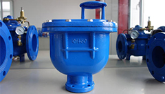 復合式排氣閥工作原理: 當管內(nèi)開始注水時,塞頭停留在開啟位置,進行大量排氣,當空氣排完時,閥內(nèi)積水浮球被浮起,傳動塞頭至關閉位置,停止大量排氣;當管內(nèi)水正常輸送時,