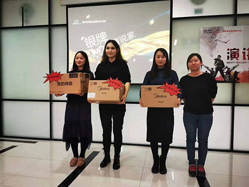 一天的演講比賽很快結束了,名詞分別為,星耀演說家1名、金牌演說家2名、銀牌演說家3名、銅牌演說家,所對應的產品是平板電腦、小度音響、美的電烤箱、羽絨被。參加演講比賽的共25人。沈陽泰科的兩位小伙伴獲得了銀牌演說家,她們分別是第四名和第六名。